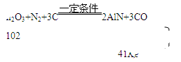 氮化鋁(AlN)具有耐高溫、抗沖擊、導(dǎo)熱性好等優(yōu)良性質(zhì),廣泛應(yīng)用于電子工業(yè)、陶瓷工業(yè)等領(lǐng)域。在一定條件下,氮化鋁可通過如下反應(yīng)制備:Al2O3+N2+3C 2AlN+3CO,若要得到41Kg的氮化鋁,則至少需要參加反應(yīng)的氧化鋁(Al2O3)的質(zhì)量為多少千克?