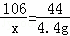 | 解答: | 解:①根據(jù)表中數(shù)據(jù)可得,第一次加入稀鹽酸充分反應(yīng)后,產(chǎn)生氣體二氧化碳的質(zhì)量為132g+25﹣155.2g=1.8g; ②樣品完全反應(yīng)時(shí),產(chǎn)生CO2的質(zhì)量為=132g+100g﹣227.6g=4.4g 設(shè)生成4.4gCO2,需碳酸鈉的質(zhì)量為x Na2CO3+2HCl═2NaCl+H2O+CO2↑ 106 44 x 4.4g
