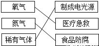 (2)請將下列空氣的各種成分和相應的用途連線.
