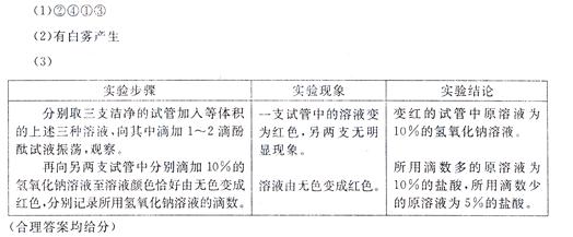 (1)配制10%的鹽酸的步驟打:①稀釋 ②汁算 ③裝瓶并貼標(biāo)簽 ④量取濃鹽酸和水。