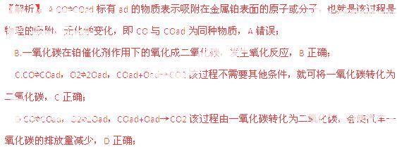 2Oad COad + Oad→CO2(式中標(biāo)有ad的物質(zhì)表示吸附在金屬鉑表面的原子或分子),下列說法錯誤的是