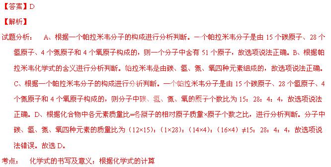 D.帕拉米韋中碳、氫、氧、氮四種元素的質(zhì)量比為15:28:4:4