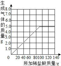 | 生成氣體的質(zhì)量/g | 1.1 | 2.2 | a | 4.4 | 4.95 | b | -- |