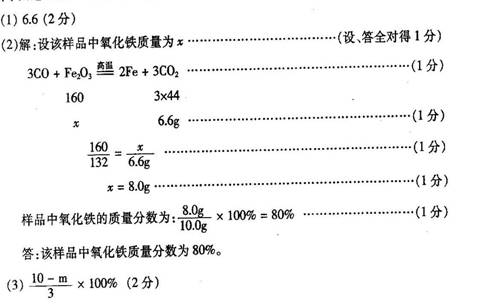 ⑶若上述反應(yīng)后剩余固體質(zhì)量為m克,寫(xiě)出計(jì)算該赤鐵礦石中氧化鐵質(zhì)量分?jǐn)?shù)的表達(dá)式: (用m表示)