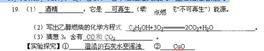 | ①將乙醇燃燒的產(chǎn)物通入盛有足量的石灰水的廣口瓶中。 | 。 | 猜想3成立 |