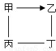 右圖中“→”表示甲在一定條件下可以轉(zhuǎn)化成乙,“—”代表相連的兩物質(zhì)間在一定條件下可以發(fā)生反應(yīng),甲、乙、丙、丁分別表示一氧化碳、碳、氧氣、二氧化碳中的某一物質(zhì),請(qǐng)分析下列結(jié)論正確的是