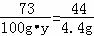 解得:y=7.3%; (2)設(shè)原混合物中 CaCO3的質(zhì)量為x CaCO3+2HCl═CaCl2+H2O+CO2↑ 100 44 x 4.4g