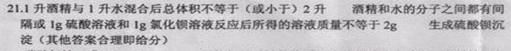 酒精和水的分子之間都有間隔或1g硫酸溶液和1g氯化鋇溶液反應(yīng)后所得的溶液質(zhì)量不等于2g 生成硫酸鋇沉淀 |