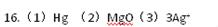 (1)汞元素 ▲ ;(2)氧化鎂 ▲ ;(3)三個銀離子 ▲ 。