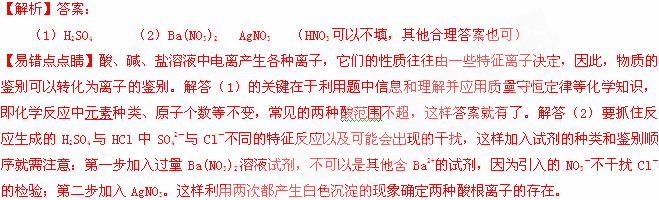 (2)某同學(xué)為了證明所得混合酸中含有的兩種酸根離子,設(shè)計實驗加以確認,加入試劑的順序依次是: