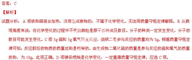 A.將5g鐵和5g銅混合加熱后,物質(zhì)的總質(zhì)量為10g,遵循質(zhì)量守恒定律