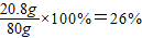 氯化鋇溶液常用來(lái)檢驗(yàn)硫酸,兩者之間發(fā)生如下化學(xué)反應(yīng):BaCl2+H2SO4=BaSO4 ↓+2HCl。某同學(xué)將80g氯化鋇溶液與20g 稀硫酸混合,恰好完全反應(yīng),過(guò)濾后稱得稀鹽酸的質(zhì)量為76.7g,求氯化鋇溶液的溶質(zhì)質(zhì)量分?jǐn)?shù)。