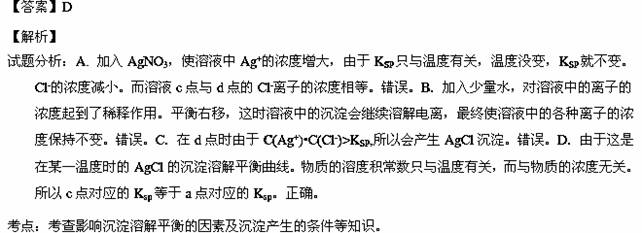 Ag+(aq)+Cl-(aq)在水中的沉淀溶解平衡曲線如圖所示。