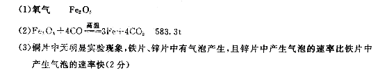 (3)實驗室用鋅片、鐵片、銅片和稀硫酸,能驗證鋅、鐵、銅的金屬活動性順序。相關(guān)實驗的實驗現(xiàn)象是 ▲ 。