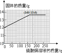 (6)鐵和硫酸銅還未反應(yīng)時(shí)固體就是鐵質(zhì)量為12g,故起點(diǎn)應(yīng)從縱軸上12開始畫起;