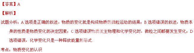 | A. | 我們觀察到的物質(zhì)的宏觀變化,本質(zhì)上都是構(gòu)成物質(zhì)的微粒不斷運(yùn)動與變化的結(jié)果 |