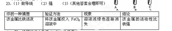 (3)請(qǐng)自選試劑,設(shè)計(jì)實(shí)驗(yàn)探究該金屬與鐵的活動(dòng)性強(qiáng)弱,并完成下表:
