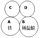 (1)用兩個圓表示C(硫酸銅溶液)、D(氫氧化鎂)兩種物質(zhì),請將C、D畫在A、B的相應(yīng)位置,并標(biāo)出物質(zhì)的名稱。