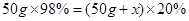 實(shí)驗(yàn)需要質(zhì)量分?jǐn)?shù)為20%的稀硫酸。現(xiàn)將50g質(zhì)量分?jǐn)?shù)為98%的濃硫酸稀釋為質(zhì)量分?jǐn)?shù)為20%的稀硫酸,需要水的質(zhì)量是