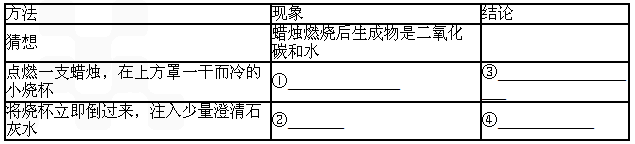 | 將一只內(nèi)壁附有澄清石灰水的燒杯罩在火焰上方. | 燒杯內(nèi)壁有白色固體生成 | 說(shuō)明蠟燭燃燒還生成______. 蠟燭燃燒的文字表達(dá)式為: ______. |