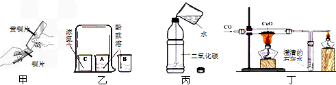 D.丁實(shí)驗(yàn)既可以說明一氧化碳具有還原性,又可以說明一氧化碳具有可燃性