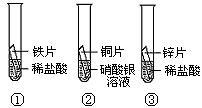 | A.三種金屬活動(dòng)性由強(qiáng)到弱順序?yàn)殍F銀銅 |