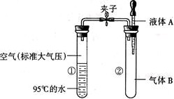 如圖所示,夾子開始處于關(guān)閉狀態(tài),將液體A滴入試管②與氣體B充分反應(yīng),打開夾子,可發(fā)現(xiàn)試管①內(nèi)的水立刻沸騰了。則液體A和氣體B的組合可能是下列的 ( )