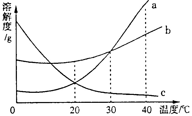 如圖所示是甲、乙、丙三種物質的溶解度曲線,在20℃時,分別取等質量的三種物質的飽和溶液放入三只燒杯中,然后向溶液分別加入等質量的相應固體物質,再將溫度升高到40℃,結果甲物質全部溶解,丙物質部分溶解,試回答下列問題: