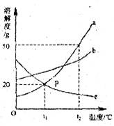 下圖是a、b、c三種物質(zhì)的溶解度曲線,a與e的溶解度曲線相交于P點。據(jù)圖回答: