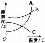 右圖是A、B、C三種固體物質(zhì)的溶解度曲線,當(dāng)它們的溶液接近飽和時,若分別采用升高溫度、蒸發(fā)溶劑、增加溶質(zhì)的方法,均可使之變?yōu)轱柡腿芤旱氖?nbsp; ( )