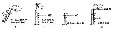 A.配制稀硫酸時,將水沿量筒壁慢慢注入濃硫酸中,并不斷攪拌