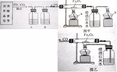 (H2C2O4·2 H2O==CO↑+ CO2↑+3H2O),做煉鐵原理實(shí)驗(yàn)并進(jìn)行尾氣處理,設(shè)計(jì)以下裝置(圖甲、圖乙)。