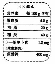(2)“××糕點(diǎn)”主要營養(yǎng)成分如下表所示。請(qǐng)根據(jù)該表回答。