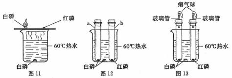 | a試管中白磷燃燒,熱水中白磷沒(méi)有燃燒. b試管中紅磷沒(méi)有燃燒. | b試管中紅磷、熱水中白磷都沒(méi)有燃燒的原因是① ;② 。 |