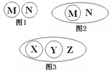 圖1可表示“M與N的并列關(guān)系”,圖2可表示“M屬于N的從屬關(guān)系”。下列概念間的關(guān)系符合圖3所示關(guān)系的是