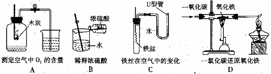 (2)A中可燃物應(yīng)取過量的原因是______________________;B中玻璃棒的作用是_____;一段時間后,C中的實驗現(xiàn)象為___________________________________;D中硬質(zhì)玻璃管內(nèi)發(fā)生反應(yīng)的化學方程式為__________________________________,酒精燈的作用是_____________________。