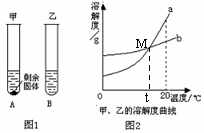 (3)右圖2中表示甲物質的溶解度曲線的是____(填“a”或“b”),要使A試管中剩余的固體繼續(xù)溶解可采用的方法是 、 。