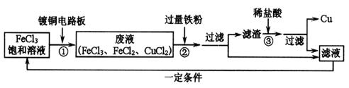 氯化鐵能腐蝕銅,工業(yè)上常用此原理生產(chǎn)印刷線路板。以下是印刷線路板的生產(chǎn)及廢液的處理過程: