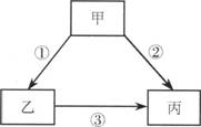甲、乙、丙是初中化學中常見的物質(zhì),其中一種物質(zhì)為單質(zhì),另外兩種物質(zhì)組成元素相同。其轉(zhuǎn)化關(guān)系如下圖所示: