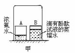 (2)實驗II(如右圖中甲所示):燒杯B中的現(xiàn)象是___________________________;產(chǎn)生這一現(xiàn)象的原因________________ ___ 。