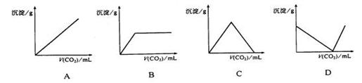 將足量的二氧化碳?xì)怏w持續(xù)不斷地通入澄清石灰水中時(shí),通入的二氧化碳體積與產(chǎn)生沉淀的質(zhì)量變化符合下列圖像中的 ( )