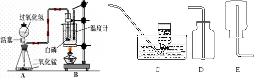 ⑴當(dāng)燒杯內(nèi)的水受熱,溫度計顯示30℃時,打開活塞,在盛有水的試管中有氣泡均勻逸出,白磷未燃燒,關(guān)閉活塞。錐形瓶內(nèi)反應(yīng)的化學(xué)方程式是:___________________。白磷未燃燒的原因是 。