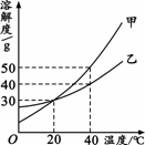 (3)40℃時(shí),將甲、乙兩物質(zhì)的飽和溶液各100g降溫至20℃,析出晶體(均不含結(jié)晶水)的質(zhì)量關(guān)系是: