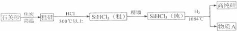 作為推行“低碳經(jīng)濟(jì)”的重要科技進(jìn)步,太陽能光伏發(fā)電成為2010年上海世博會(huì)的“亮點(diǎn)”。太陽能光伏發(fā)電最關(guān)鍵的材料是高純硅,三氯甲硅烷(SiHCl3)還原法是當(dāng)前制備高純硅的主要方法.生產(chǎn)流程示意如下: