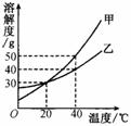 C.40 ℃時(shí),分別在100 g水中加入30 g甲、乙,同時(shí)降溫至20℃,甲、乙溶液均為飽和溶液