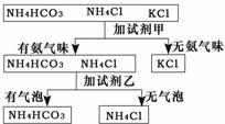 右圖是某同學(xué)鑒別NH4HCO3、NH4C1、KCl三種化肥的過程,其中試劑甲和乙分別