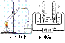 ,水中氫元素和氧元素的質量比為 ;用分子和原子的觀點分析比較A裝置和B裝置在試驗過程中水的變化情況