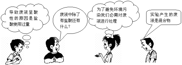。實驗結束后,同學們把“廢液”集中收集,并對“廢液”的酸堿性進行了測試,結果呈酸性。大家圍繞著如何處理“廢液”展開了討論: