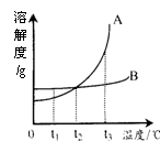D.A、B兩種飽和溶液都從t3℃降溫到t2℃,析出的晶體一定等量