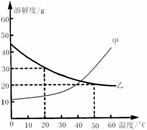 A. 甲物質(zhì)的溶解度大于乙物質(zhì)的溶解度